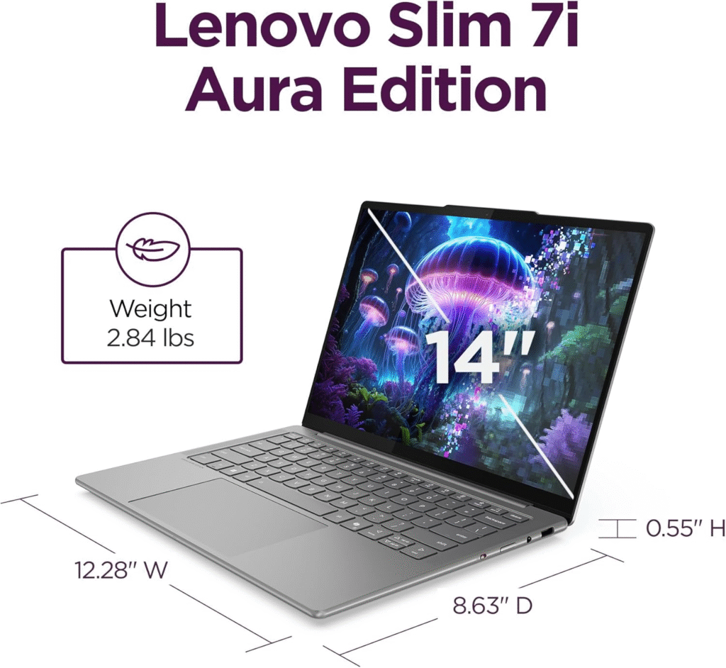 The Yoga 9i Aura Edition combines a stunning 14-inch 2.8K OLED touchscreen with nearly 24 hours of real-world battery life in testing. The 360-degree hinge lets me switch between laptop and tablet mode seamlessly, and Lenovo even includes a stylus in the box.